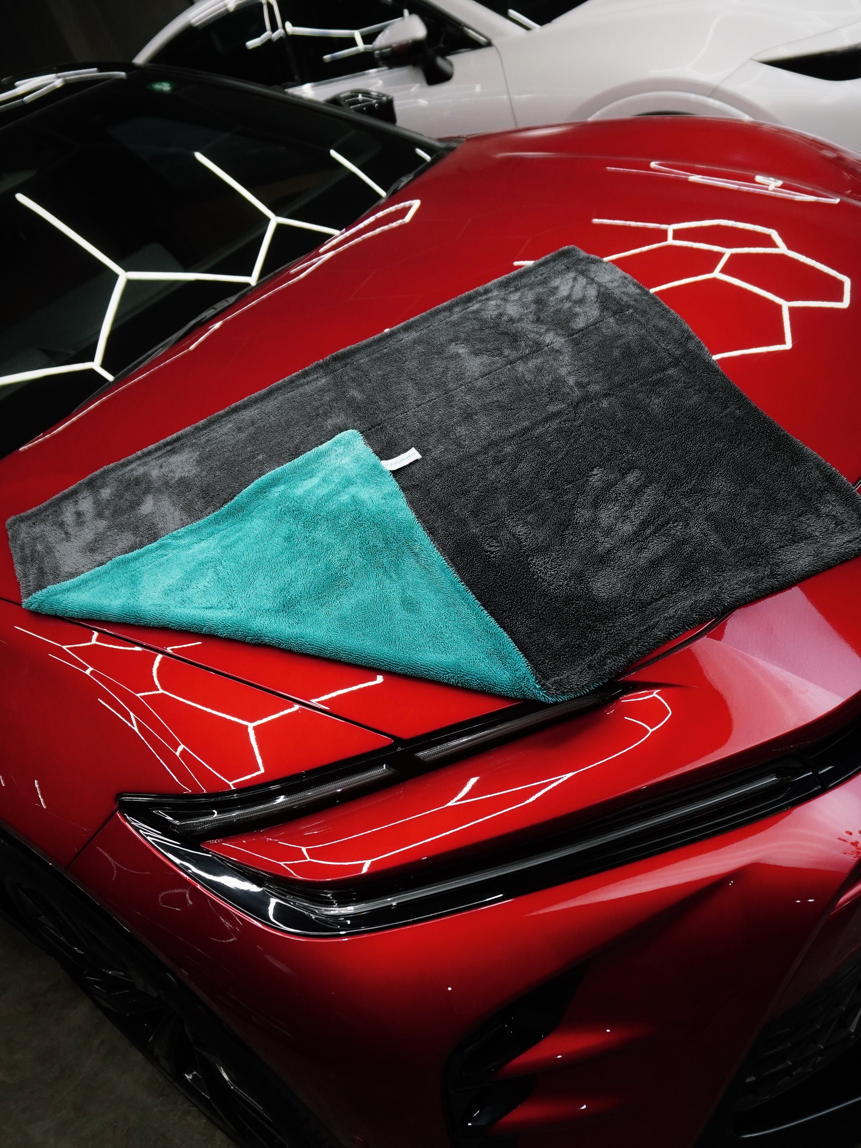 The Ultradry Drying Towel uses a Twisted-Loop Microfiber Weave which on average is 4-6x the length of the normal microfiber strand. This creates a larger surface area, thus making the towel able to hold a larger amount of water than an average microfiber towel. Leaving behind no streaks or lint like our competitors